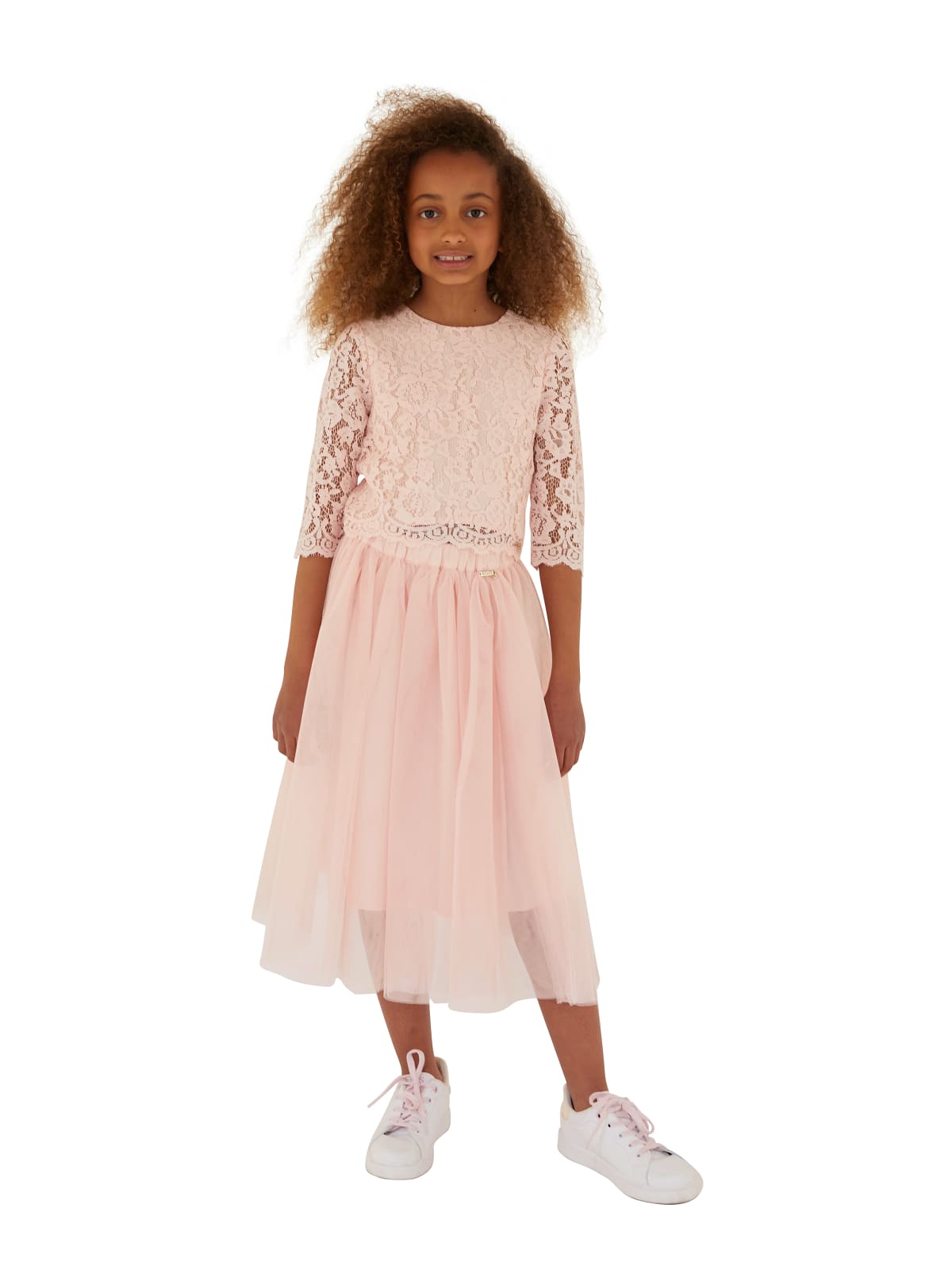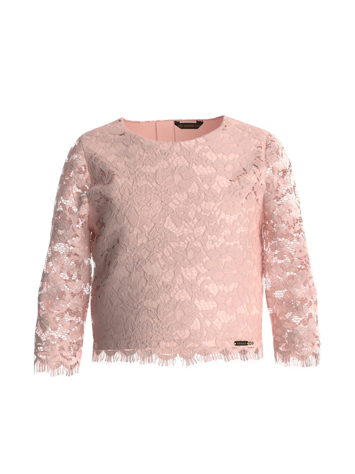 Μπλούζα κροπ με δαντέλα, με ¾ μανίκια, με στρογγυλή λαιμόκοψη, κλείσιμο πίσω στην πλάτη.
