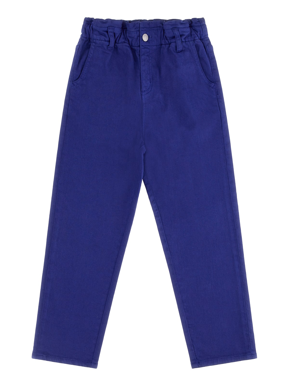 Τζιν παντελόνι paperbag με τύπωμα το τρίγωνο με το λογότυπο, τετράτσεπο, με λάστιχο φαρδύ στην μέση, κλείσιμο με κουμπί με το λογότυπο και φερμουάρ.