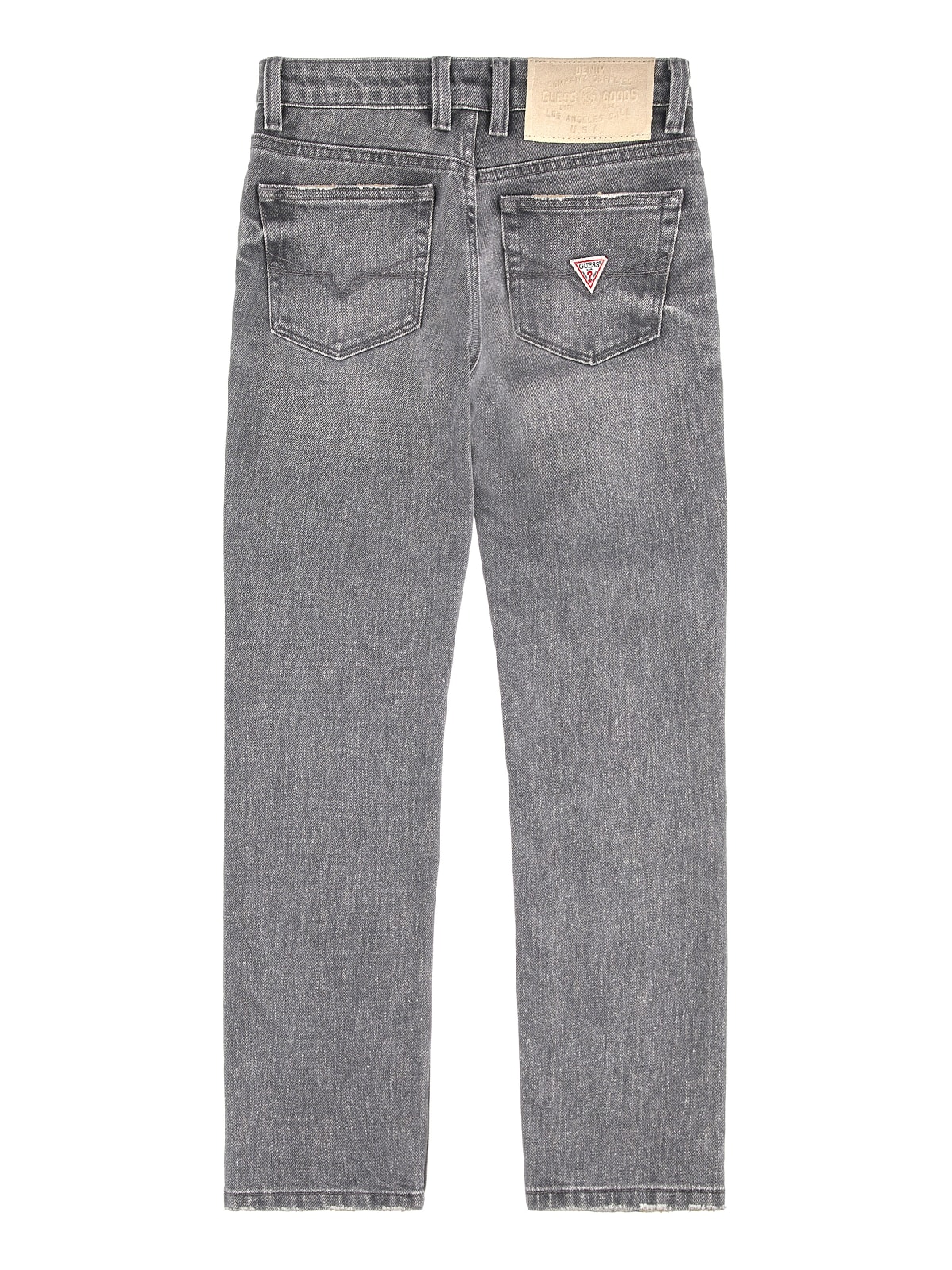 Παντελόνι τζιν με τύπωμα τρίγωνο με το λογότυπο στην δεξιά πίσω τσέπη, με λάστιχο στην μέση εσωτερικά το οποίο αυξομειώνεται, κλείσιμο , με φερμουάρ και κουμπί, πεντάτσεπο, με δερμάτινο τύπωμα πίσω δεξιά στην μέση.