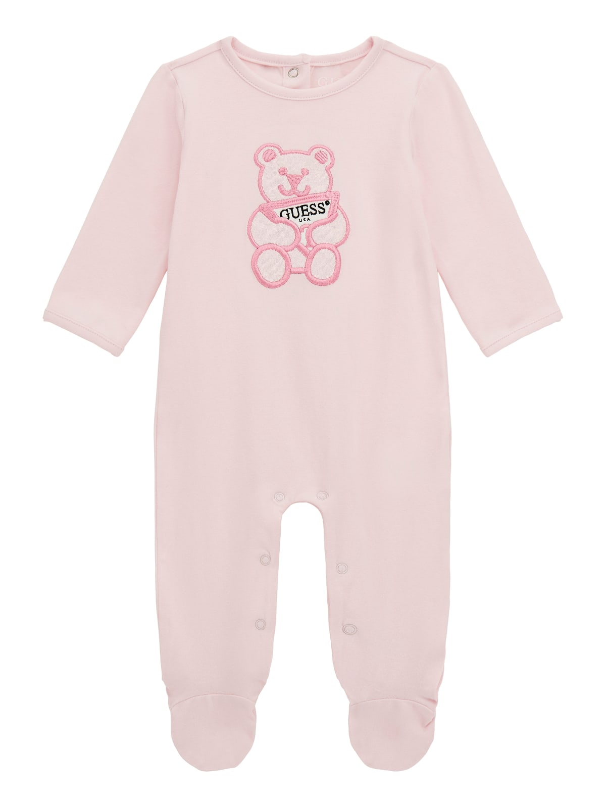 Φορμάκι με κέντημα αρκουδάκι με το λογότυπο, με στρογγυλή λαιμόκοψη, κλείσιμο με τρουκς πίσω στην πλάτη και εσωτερικά στα πόδια, με στάμπα καρδιά στις πατούσες.